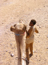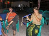 we: Date: 25th - 28th September 2005 End GPS: N28 29.526 E034 30.963 Total Kilometres: 73,341 km Weather: 39.5 C, hot and sunny Camping: a room at Auski Camp "Bedouin Lodge" We are having a few days of R&R here in Dahab, staying and diving with Auski camp and Bedouin Divers. Kat and I enjoyed three good dives at Lighthouse, Canyon and Blue Hole. The first dive is a simple dive along a coral shelf and allowed us to ease back into the blue. Then it was off to the Canyon and the fish tank a great dive that entails you entering into the canyon at a depth of about 28metres, you then work your way along the canyon before exiting via the fish tank which is a small cavern which when you are outside has the spectacle of a thousand bubbles as they escape from inside. We also dived Blue Hole a very exciting dive that entailed an entry into a shaft that leads you straight down to 29metres where you exit onto the big blue side of the coral shelf, from here you work you way back along the shelf to the lip that takes you into the Blue Hole a 60 metres circular bowl. Great dives and very relaxed times where had here. Tagebuch Heute ging es weiter nach Dahab. Wir haben uns so darauf gefreut, von allen was wir gehoert und gelesen haben und wollten Tauchen gehen. Dahab heisst uebersetzt Gold, wie goldene Straende - wo die in Dahab sind wissen wir bis heute nicht! Als wir ankamen haben wir erst versucht was zum Campen zu finden, aber es war tierisch windig und da wo die Camping haben ging es Bergabwaerts....Nach einigem hin-und-her haben wir das Auski Camp "Bedouin Lodge" gefunden. Hier haben wir mit dem Manager einen guten Preis fuer Zimmer verhandelt und hatten airconditioning, fan und saubere Toiletten und Duschen, gutes Ergebnis. Das Hotel war nett und die Leute sehr freundlich und hatten gemuetliche Bedouinsitzecken wo man abhaengen kann. Das Essen hier war glaub ich das beste in Dahab, Fruehstueck, Burgers, Fish, alles war sehr lecker. Es gab ausserdem eine Tauchschule und David und ich haben uns fuer 3 Tauchgaenge angemeldet, waehrend Steve in der Wueste Pferdereiten war. Der erste Tauchgang sollte relaxing sein und zur Auffrischung dienen und so war es auch. Das Lighthouse, nur bis zu 16 m tief und meiste Zeit auf 9 m sind wir ueber Korallen und vielen Fischen getaucht. Dann am naechsten Tag haben wir einen Kombinationstag gehabt - zwei Tauchgaenge mit Mittag unterwegs. Erst ging es zum Canyon, man geht direkt von der Kueste ins Wasser, ohne Boote. The Canyon war cool, ich war etwas nervoes, da man in den Canyon reinschwimmt und dann von unten die Oeffnung und all die Fische sehen kann. Wir waren 29 m tief und als wir oberhalb wieder rauskamen sah man ueberall Luftblasen von dem Canyon und die Fische tanzten ueberall herum, auch Fishtank genannt, total toll! Dann haben wir Mittag am Strand gegessen und sind eine Stunde spaeter The Bell & Blue Hole als kombination getaucht. Bei der Bell muss man als erstes durch ein glockenfoermiges Loch untertauchen und befindet sich wieder zwischen Korallen und Gestein, das durch einen Vulkan erstanden ist. Dann taucht man unter und kommt bei einer langen Korallenmauer entlang wieder hoch. Diese geht undenlich tief und man kann langsam etwas hoeher tauchen waehrend man sich wundert was da unten in dem Loch ist und an der Wand alle moeglichen Fische und Korallen bewundert. Von hier geht es weiter in das Blue Hole, was sehr bekannt ist. Ein Loch wo viele Schnorcheln und Tauchen und der Rekord fuer's Freediving gehalten wird, mit Gewichtsschlitten und ohne - einer war 87 m tief und mit Gewichten ueber 200 m!!!! Verrueckt! Am naechsten Tag sind wir mit Steve und Benson hier hergefahren um schnorcheln zu gehen. Benson hatte ganz viel Spass die Taucher und Schnorchler zu erschrecken und sich total gefreut mit uns dreien im Wasser zu plantschen. Als er kurz mal Steve aus den Augen gelassen hat und ihn nicht wiederfand war er auf "Mission Benson" und schwamm tierisch schnell umher. David dachte schon er waer auf dem Weg nach Saudi Arabia und hat ihn ein-und wiedergeholt, suess! So haben wir die Tage in Dahab doch noch genossen. Zwar gab es keinen goldenen Strand, aber zum Tauchen uns Schnorcheln war es absolut genial hier!