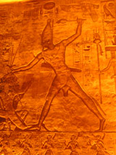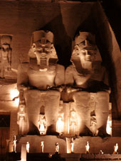 The temples are actually not in their original location, having been moved. In the 1960s with the building of the Nasser dam in Egypt the temples where in danger of being lost forever under the rising waters of the new lake Nasser. Thankfully the world heritage organisations stepped in and so began the monstrous task of cutting, dismantling, transporting and re-erecting the pieces in a place above the water levels. It is amazing to see how long, how many people and how much modern equipment was needed to undertake the task, it puts into perspective the feats of engineering genius of the ancient Egyptians. Personally I thought these temples to be the fineest in Egypt and by far more interesting and well preserved then any of the other historic sites, and by and far the best sound and light show to go and see. Regarding logistics you are suppose to travel in convoy but after 5 km upon leaving Aswan the convoy had sped off into the distance and so we had a slow cruise without any hassle. Further, we were allowed to camp for free right next to the temples, where else in the world would that be allowed?